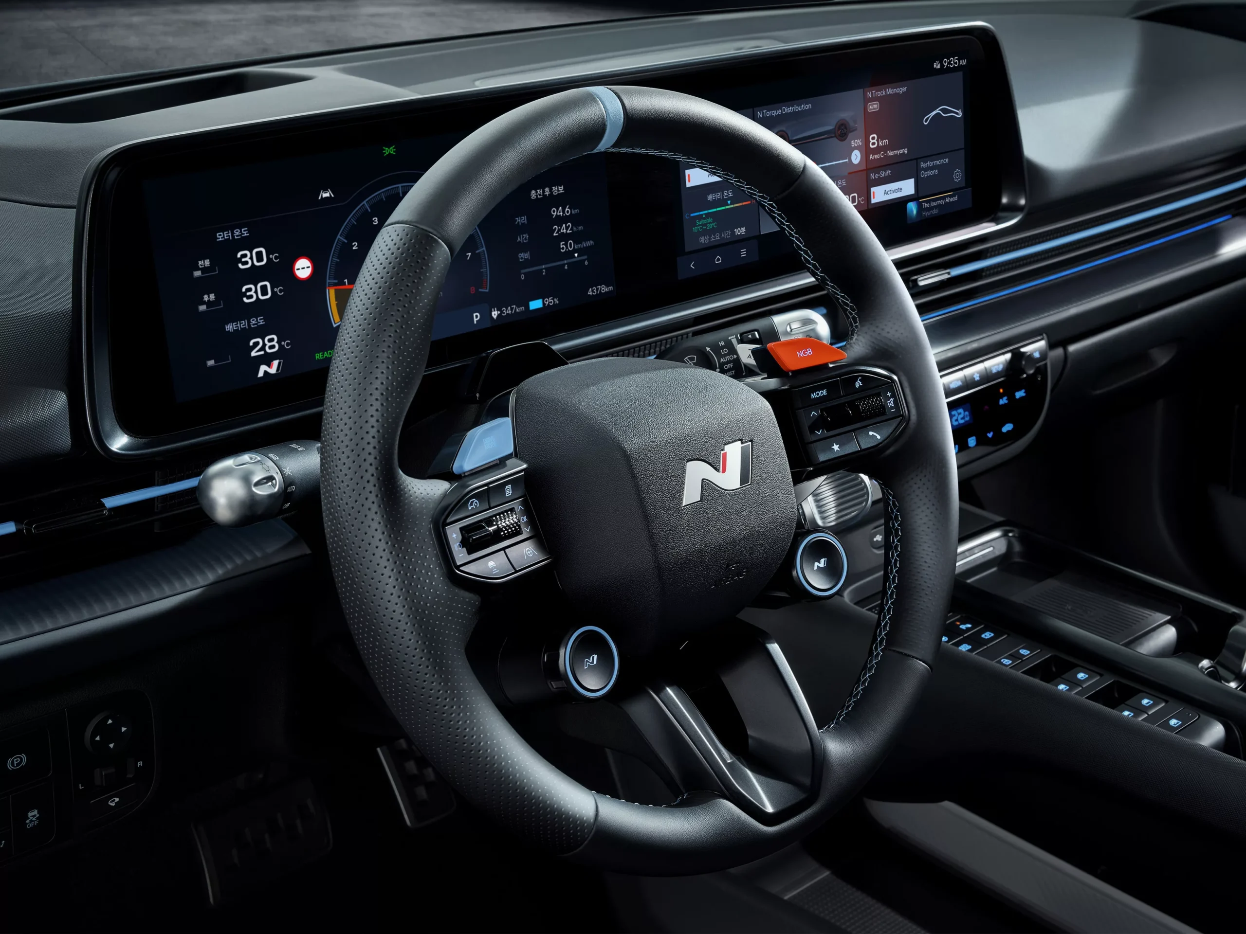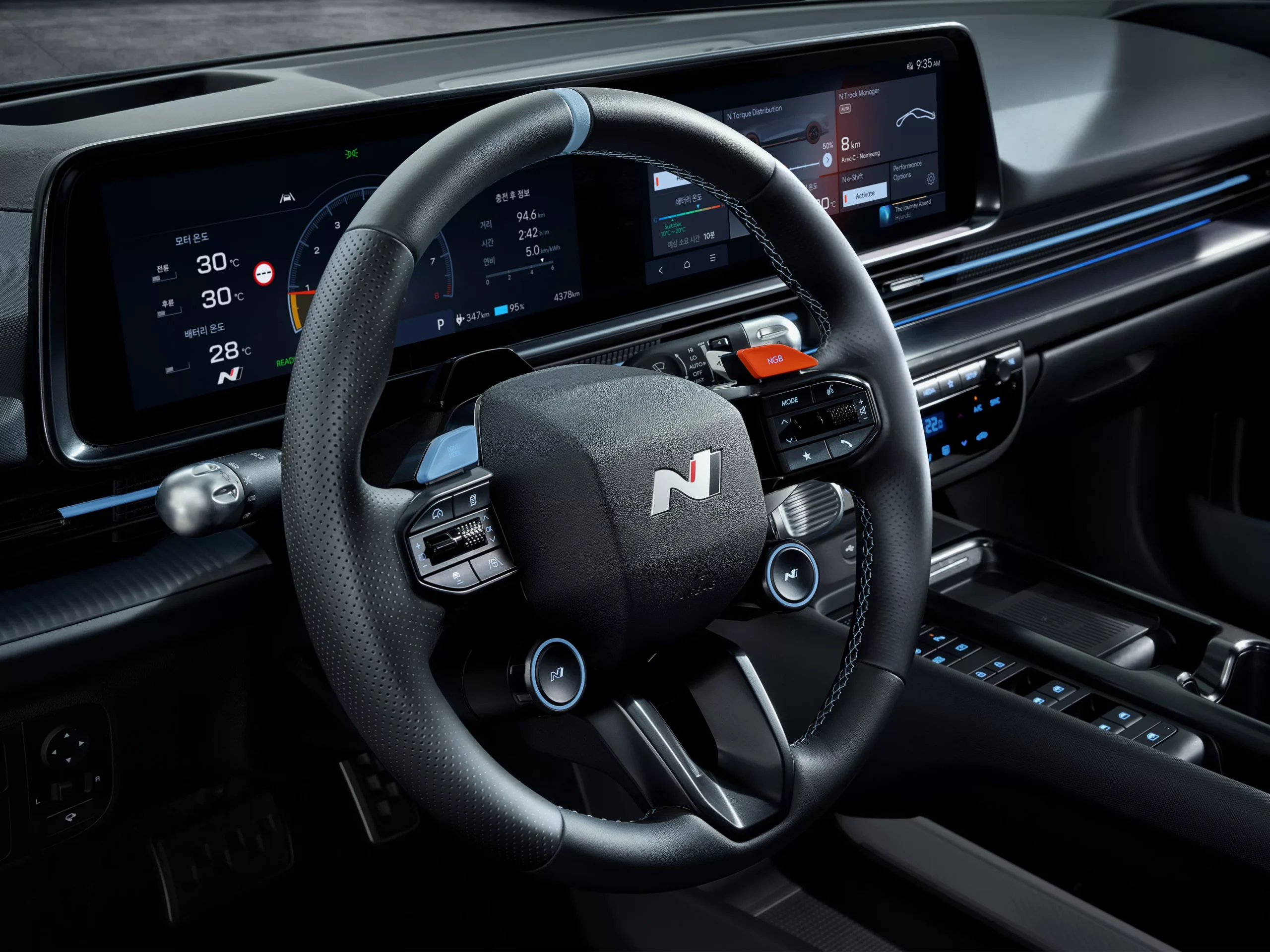To meet the rigorous demands of high-performance driving, the N Battery system optimises temperature management to enhance performance longevity. It adapts seamlessly to either drag, sprint or endurance scenarios as set by the driver. Improved thermal management and an upgraded coolant heater significantly reduce conditioning time.