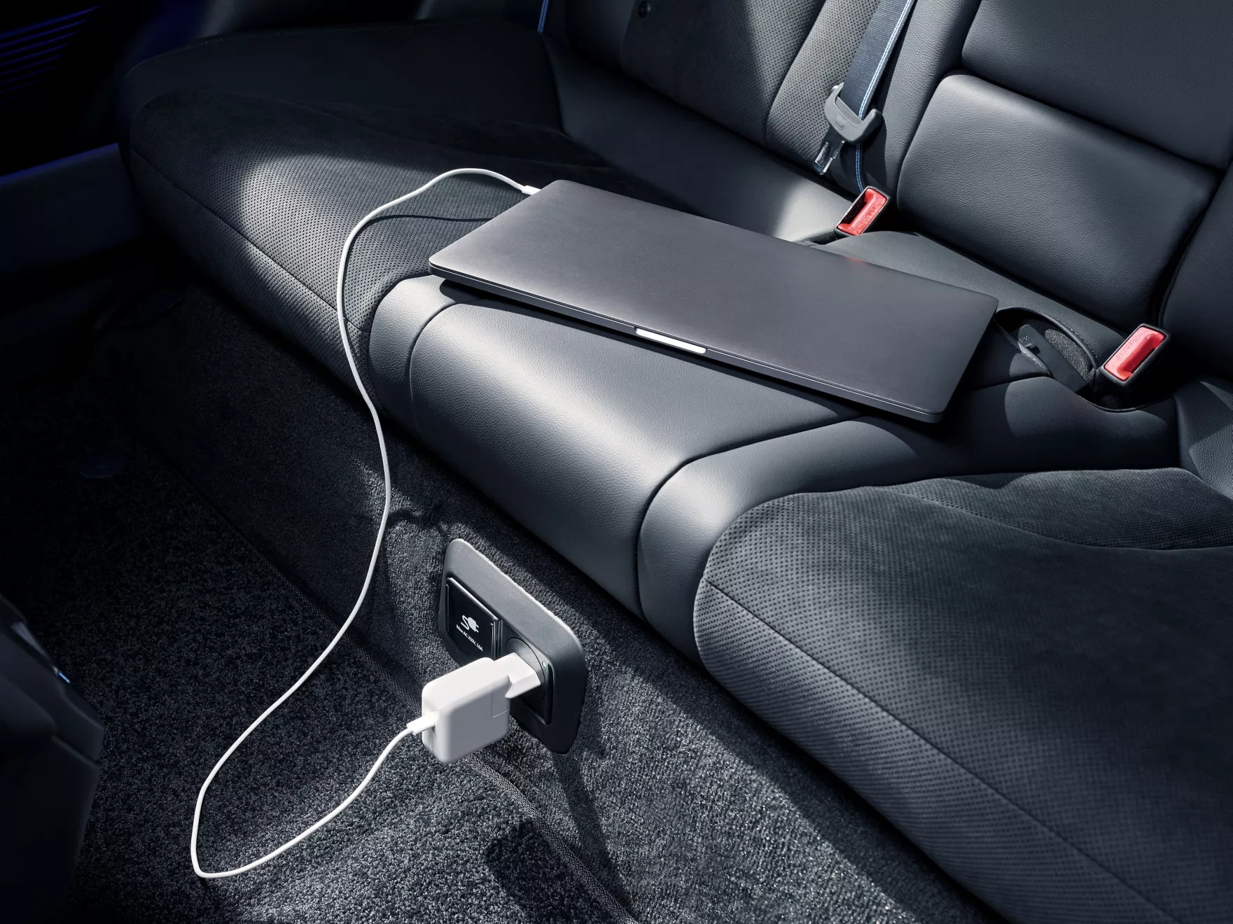 Simply plug in your laptop or tablet to charge – just like at home. With IONIQ 6 N’s Vehicle-to-Load technology (V2L) you can power any device or charge electrical equipment up to 3.6 kW with the on-board 230V socket located in the second row.