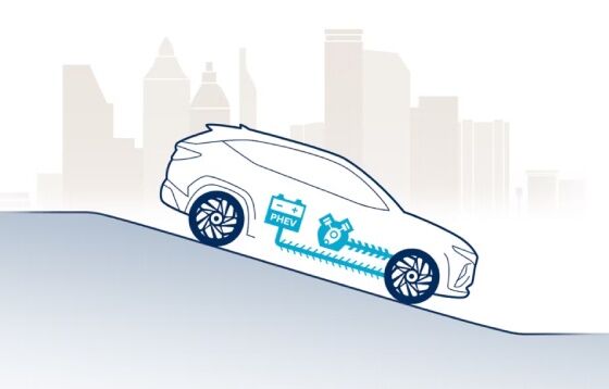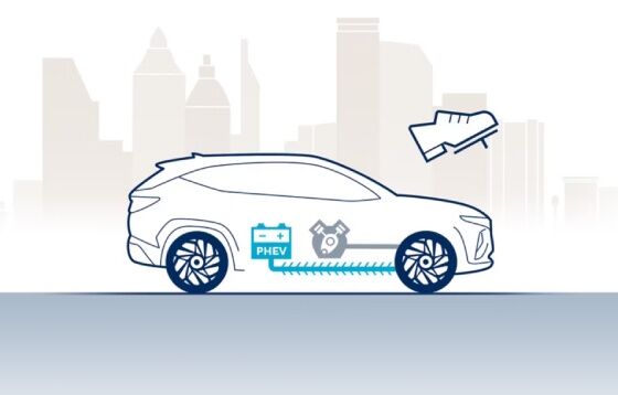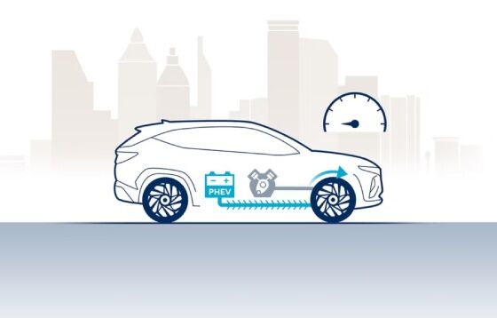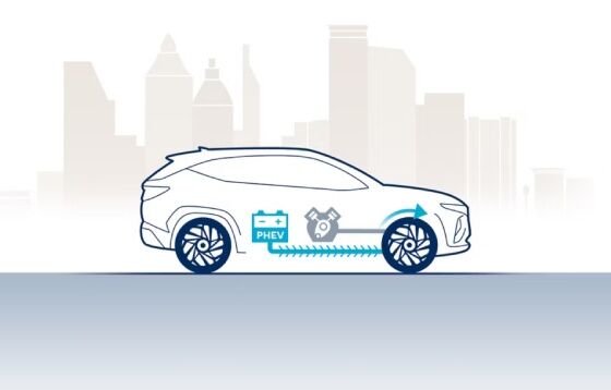 When starting or driving at low speed, the electricity stored in the battery powers the electric motor to accelerate the Tucson Plug-in Hybrid.