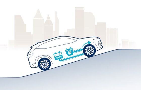 During heavy acceleration or driving uphill, the electric motor and petrol engine work in parallel to maximise acceleration and minimise fuel consumption.